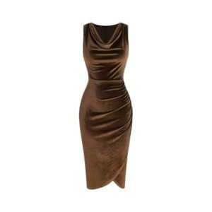 Cocktail Dress for Women, Sparkly Cowl Neck 3/4 Sleeves Wedding Guest Dresses 2026