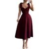 Women’s Elegant Bow Midi Dress Sleeveless Ruffle Cocktail Evening Party Dresses