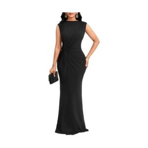 Women’s One Shoulder Belted Maxi Dress Long Formal Wedding Guest Dress with Pockets